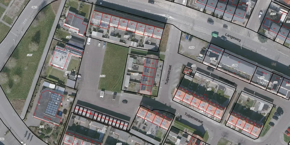 Het perceel waarop Tulpenstraat 17 staat heeft een oppervlakte van 639 m². Dit is een groot perceel. De perceeloppervlakte wordt geregistreerd door het Kadaster. Gedetailleerde informatie over de maten van dit perceel kunt u vinden in het rapport Kadastrale kaart met maatvoering van Tulpenstraat 17.