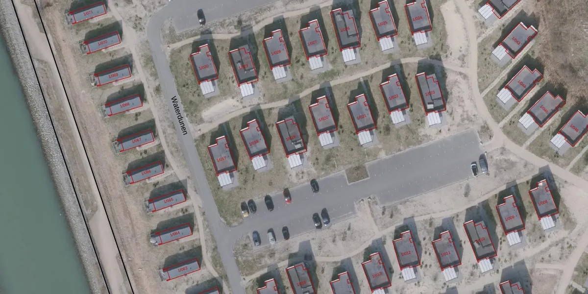 Het perceel waarop Waterdunen 1-019 staat heeft een oppervlakte van 11,1 ha. Dit is een zeer groot perceel. De perceeloppervlakte wordt geregistreerd door het Kadaster. Gedetailleerde informatie over de maten van dit perceel kunt u vinden in het rapport Kadastrale kaart met maatvoering van Waterdunen 1-019.