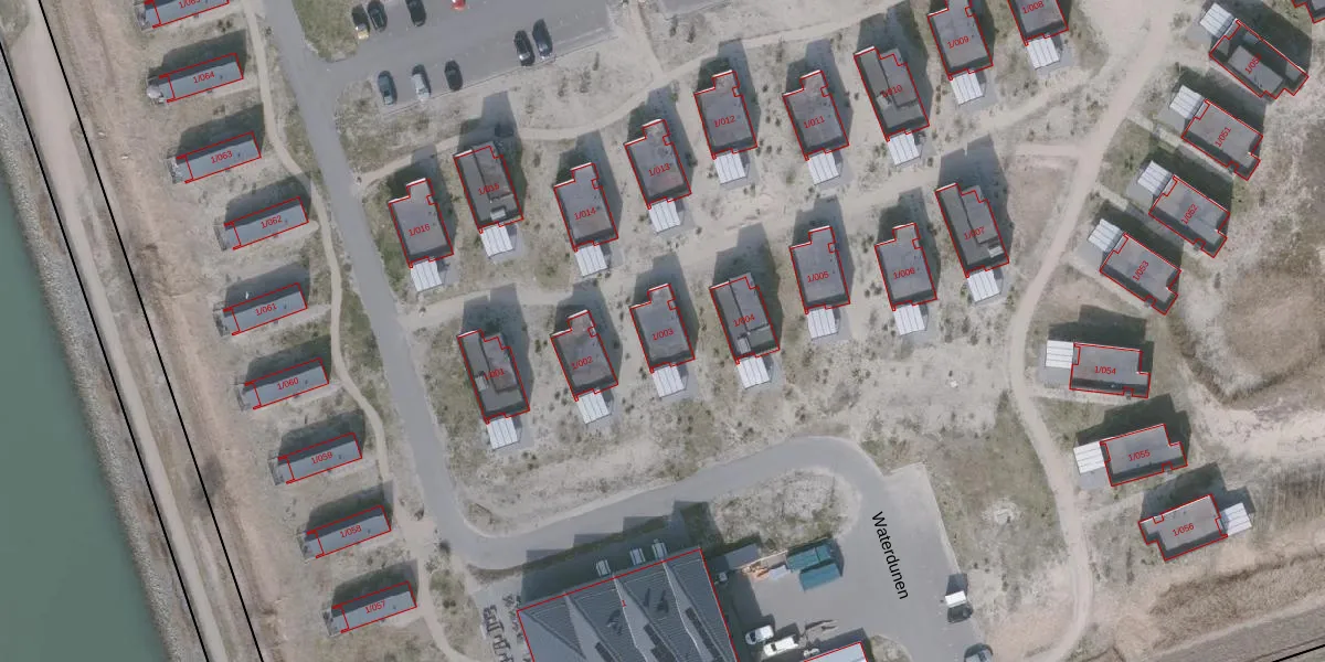 Het perceel waarop Waterdunen 1-003 staat heeft een oppervlakte van 11,1 ha. Dit is een zeer groot perceel. De perceeloppervlakte wordt geregistreerd door het Kadaster. Gedetailleerde informatie over de maten van dit perceel kunt u vinden in het rapport Kadastrale kaart met maatvoering van Waterdunen 1-003.