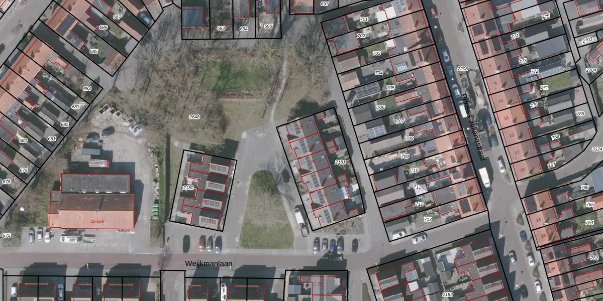 Het perceel waarop Weijkmanlaan 27 staat heeft een oppervlakte van 718 m². Dit is een groot perceel. De perceeloppervlakte wordt geregistreerd door het Kadaster. Gedetailleerde informatie over de maten van dit perceel kunt u vinden in het rapport Kadastrale kaart met maatvoering van Weijkmanlaan 27.