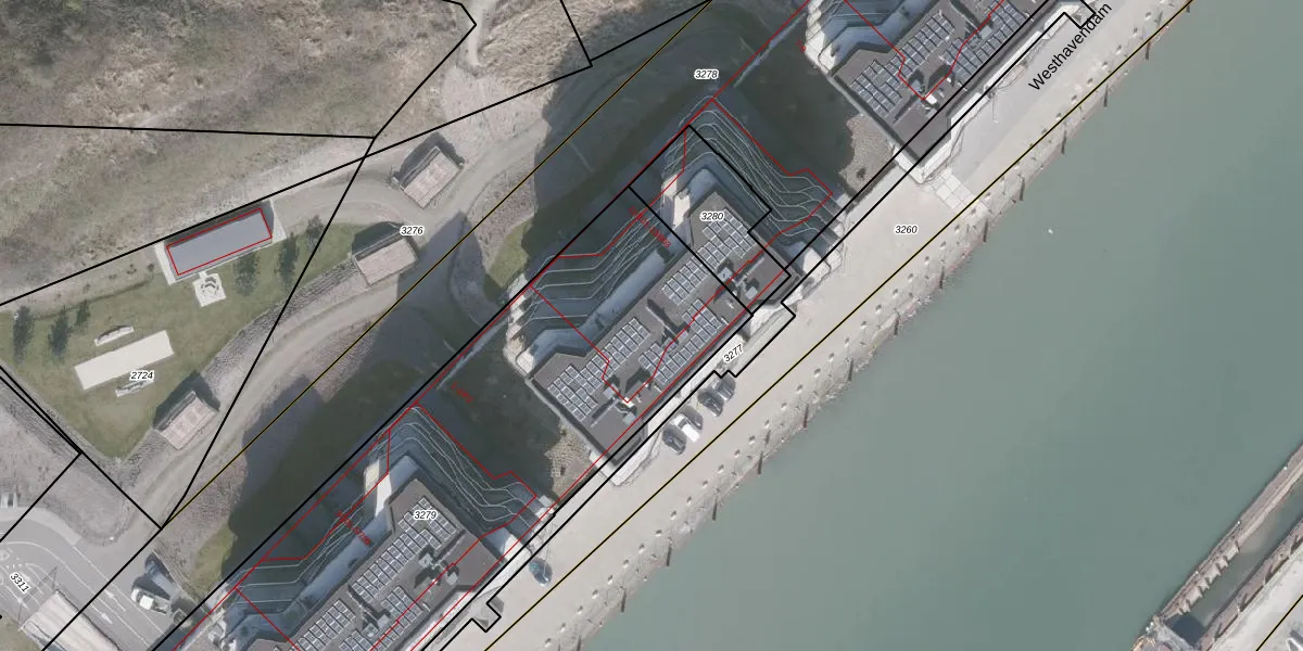 Het perceel waarop Westhavendam 11-202 staat heeft een oppervlakte van 3251 m². Dit is een zeer groot perceel. De perceeloppervlakte wordt geregistreerd door het Kadaster. Gedetailleerde informatie over de maten van dit perceel kunt u vinden in het rapport Kadastrale kaart met maatvoering van Westhavendam 11-202.