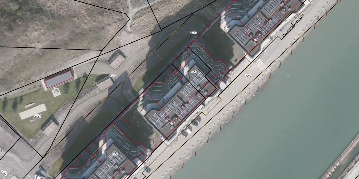Het perceel waarop Westhavendam 11-303 staat heeft een oppervlakte van 3251 m². Dit is een zeer groot perceel. De perceeloppervlakte wordt geregistreerd door het Kadaster. Gedetailleerde informatie over de maten van dit perceel kunt u vinden in het rapport Kadastrale kaart met maatvoering van Westhavendam 11-303.