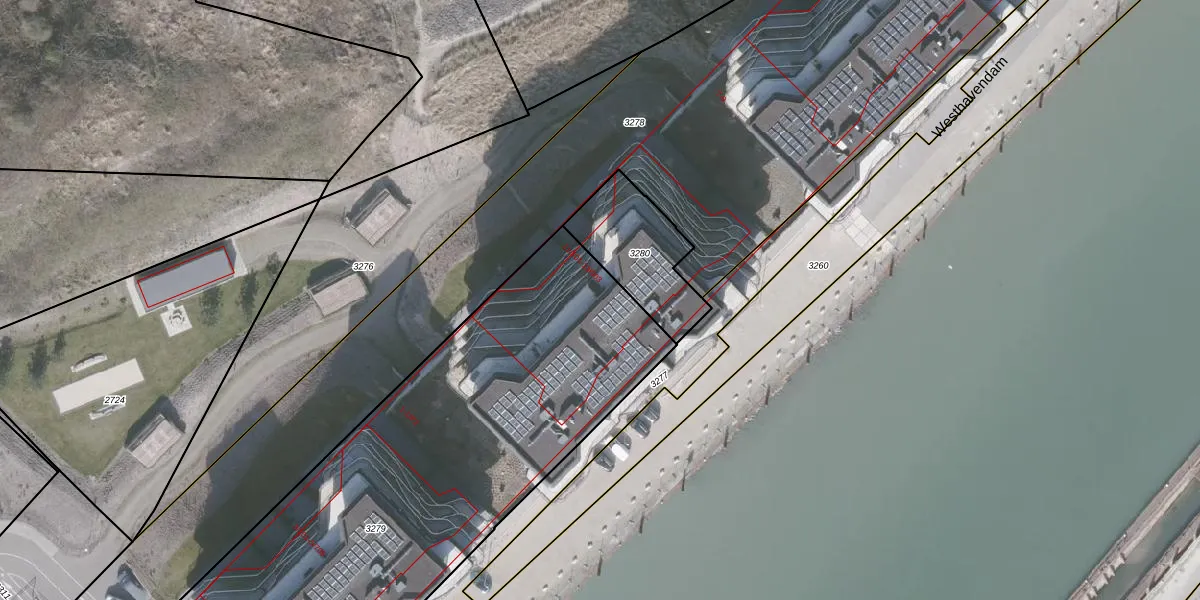 Het perceel waarop Westhavendam 11-903 staat heeft een oppervlakte van 3251 m². Dit is een zeer groot perceel. De perceeloppervlakte wordt geregistreerd door het Kadaster. Gedetailleerde informatie over de maten van dit perceel kunt u vinden in het rapport Kadastrale kaart met maatvoering van Westhavendam 11-903.
