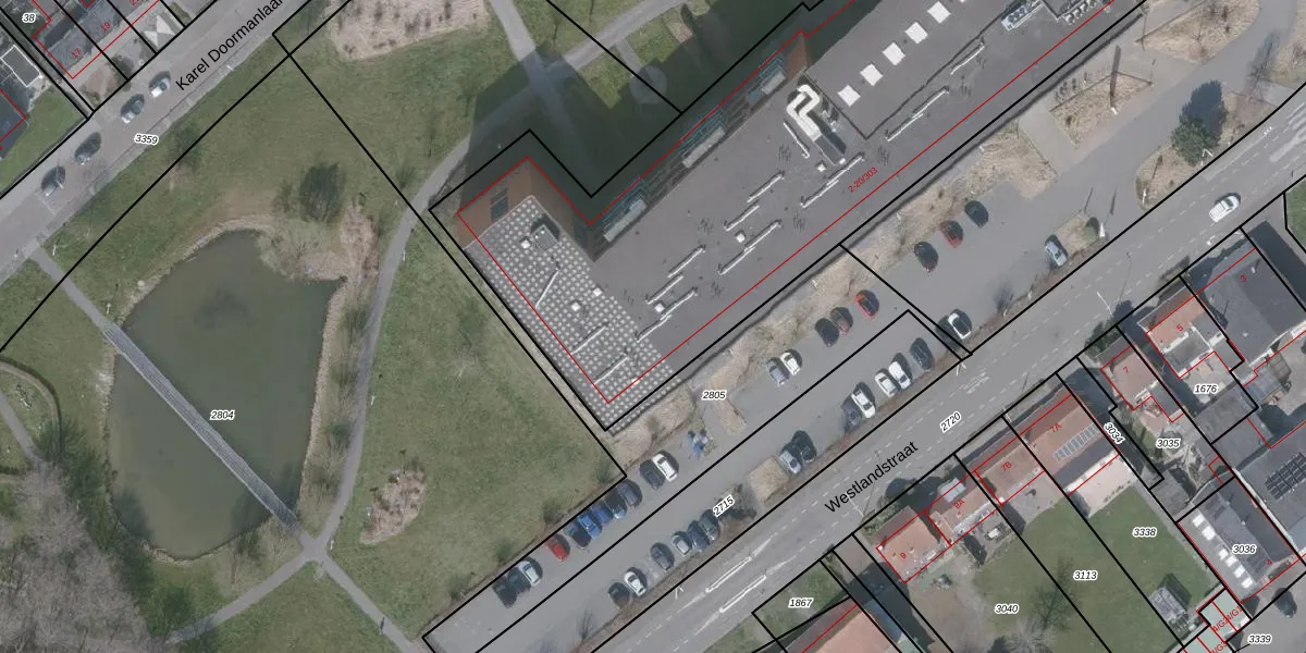 Het perceel waarop Westlandstraat 20-103 staat heeft een oppervlakte van 6016 m². Dit is een zeer groot perceel. De perceeloppervlakte wordt geregistreerd door het Kadaster. Gedetailleerde informatie over de maten van dit perceel kunt u vinden in het rapport Kadastrale kaart met maatvoering van Westlandstraat 20-103.
