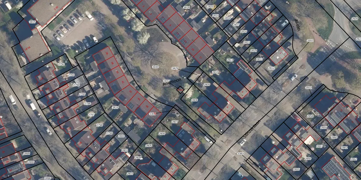Gebruik de zoekbalk of klik op een perceel voor informatie over de adressen binnen dit perceel.