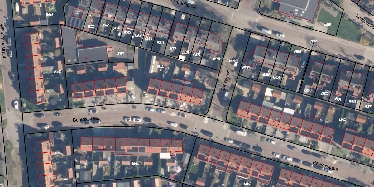 Het perceel waarop Beatrixstraat 17 staat heeft een oppervlakte van 2030 m². Dit is een zeer groot perceel. De perceeloppervlakte wordt geregistreerd door het Kadaster. Gedetailleerde informatie over de maten van dit perceel kunt u vinden in het rapport Kadastrale kaart met maatvoering van Beatrixstraat 17.
