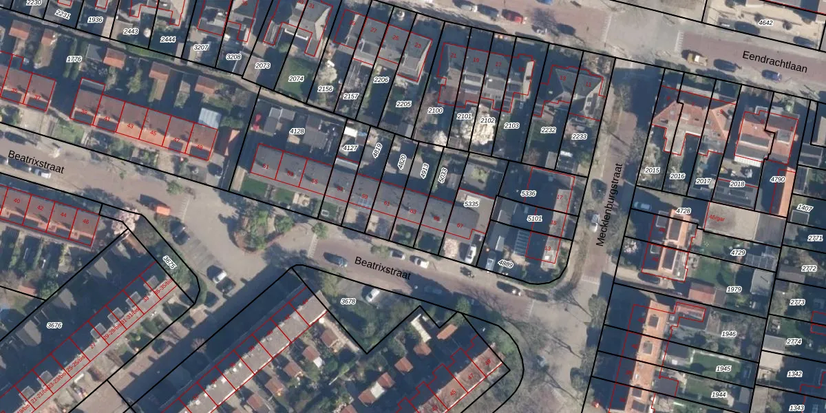 Gebruik de zoekbalk of klik op een perceel voor informatie over de adressen binnen dit perceel.