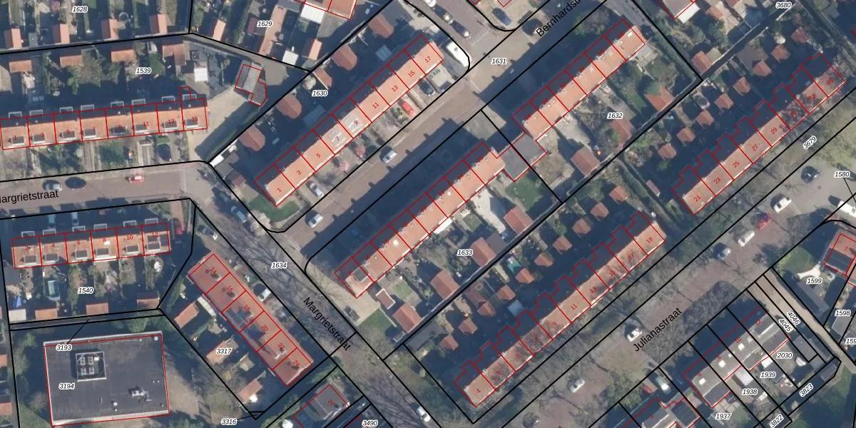 Het perceel waarop Bernhardstraat 10 staat heeft een oppervlakte van 1610 m². Dit is een zeer groot perceel. De perceeloppervlakte wordt geregistreerd door het Kadaster. Gedetailleerde informatie over de maten van dit perceel kunt u vinden in het rapport Kadastrale kaart met maatvoering van Bernhardstraat 10.
