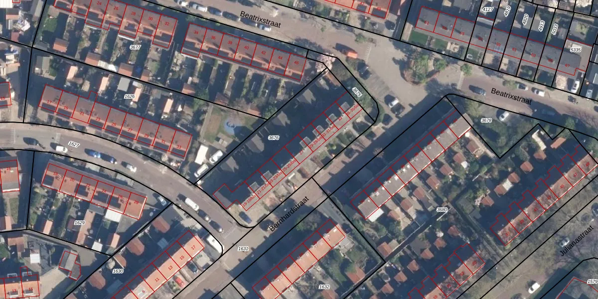 Het perceel waarop Bernhardstraat 27 staat heeft een oppervlakte van 1380 m². Dit is een zeer groot perceel. De perceeloppervlakte wordt geregistreerd door het Kadaster. Gedetailleerde informatie over de maten van dit perceel kunt u vinden in het rapport Kadastrale kaart met maatvoering van Bernhardstraat 27.