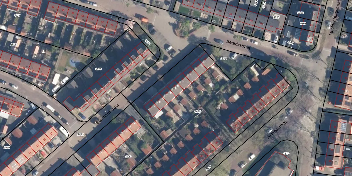 Het perceel waarop Bernhardstraat 36 staat heeft een oppervlakte van 5735 m². Dit is een zeer groot perceel. De perceeloppervlakte wordt geregistreerd door het Kadaster. Gedetailleerde informatie over de maten van dit perceel kunt u vinden in het rapport Kadastrale kaart met maatvoering van Bernhardstraat 36.