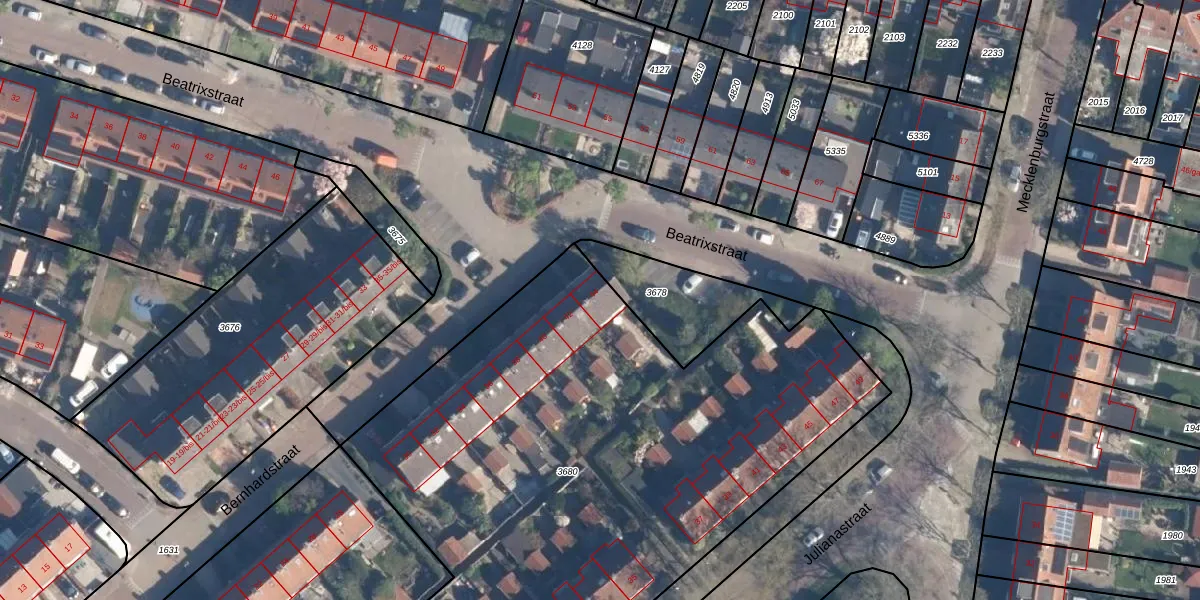 Het perceel waarop Bernhardstraat 44 staat heeft een oppervlakte van 5735 m². Dit is een zeer groot perceel. De perceeloppervlakte wordt geregistreerd door het Kadaster. Gedetailleerde informatie over de maten van dit perceel kunt u vinden in het rapport Kadastrale kaart met maatvoering van Bernhardstraat 44.