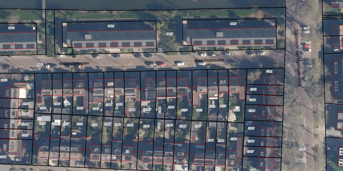 Gebruik de zoekbalk of klik op een perceel voor informatie over de adressen binnen dit perceel.