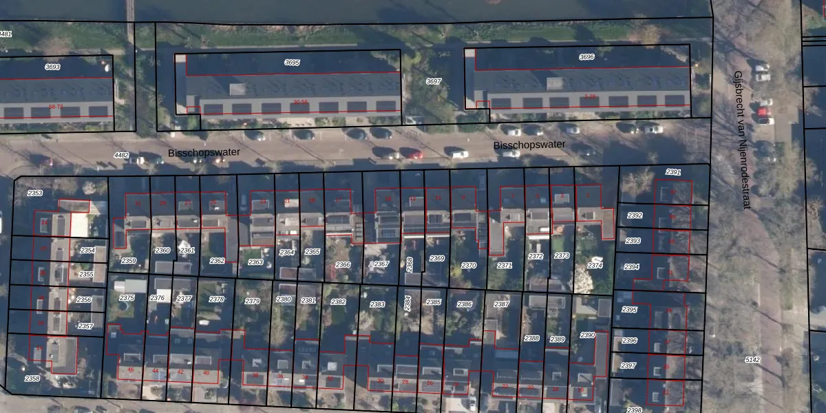 Gebruik de zoekbalk of klik op een perceel voor informatie over de adressen binnen dit perceel.