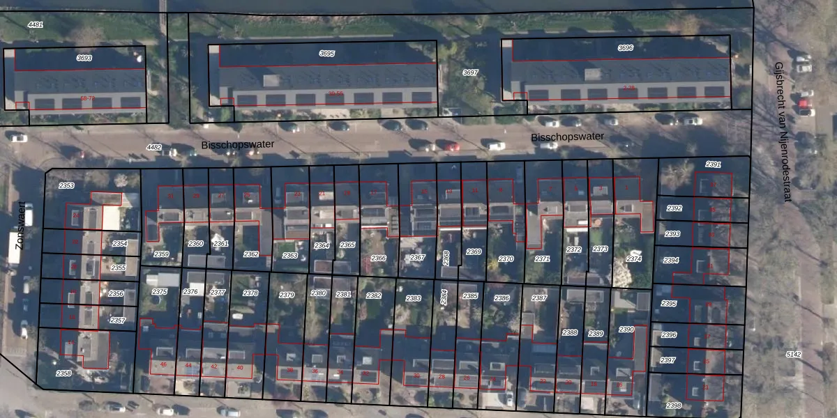 Gebruik de zoekbalk of klik op een perceel voor informatie over de adressen binnen dit perceel.