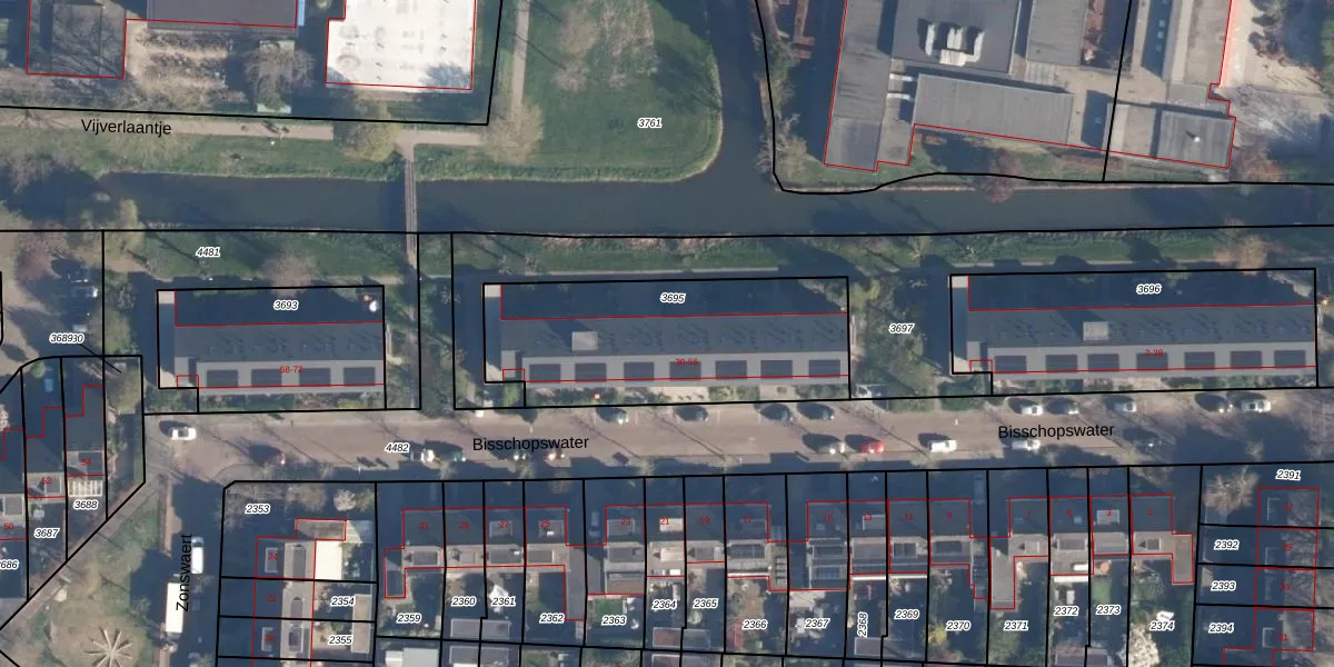 Het perceel waarop Bisschopswater 46 staat heeft een oppervlakte van 986 m². Dit is een groot perceel. De perceeloppervlakte wordt geregistreerd door het Kadaster. Gedetailleerde informatie over de maten van dit perceel kunt u vinden in het rapport Kadastrale kaart met maatvoering van Bisschopswater 46.