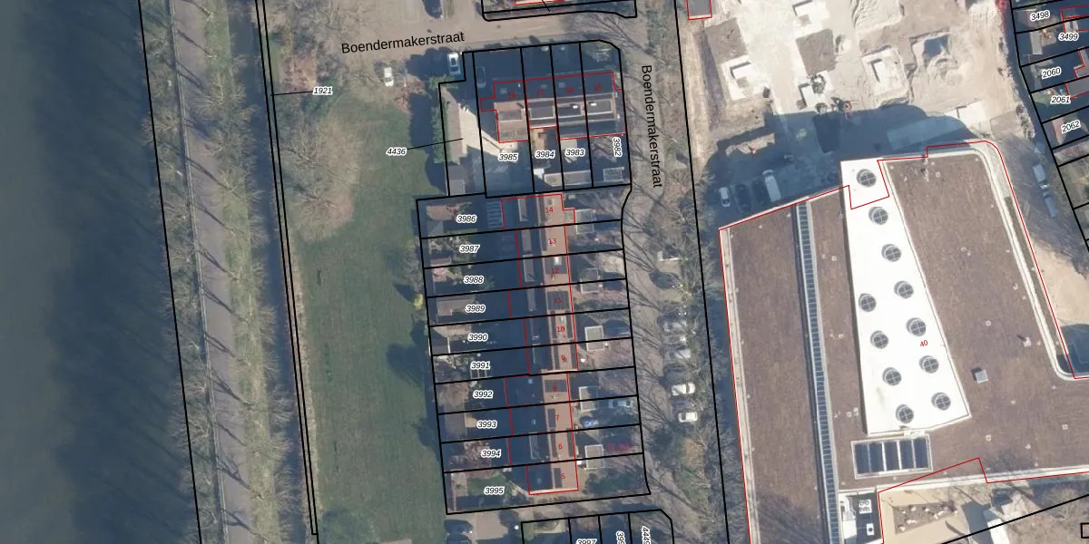 Boendermakerstraat 12 is gelegen op kadastraal perceel BKL07B3988. Deze kadastrale aanduiding is uniek en wordt gebruikt door het Kadaster om eigendomsrechten en andere zakelijke rechten vast te leggen. Het perceel maakt onderdeel uit van de kadastrale gemeente Breukelen-Nijenrode.