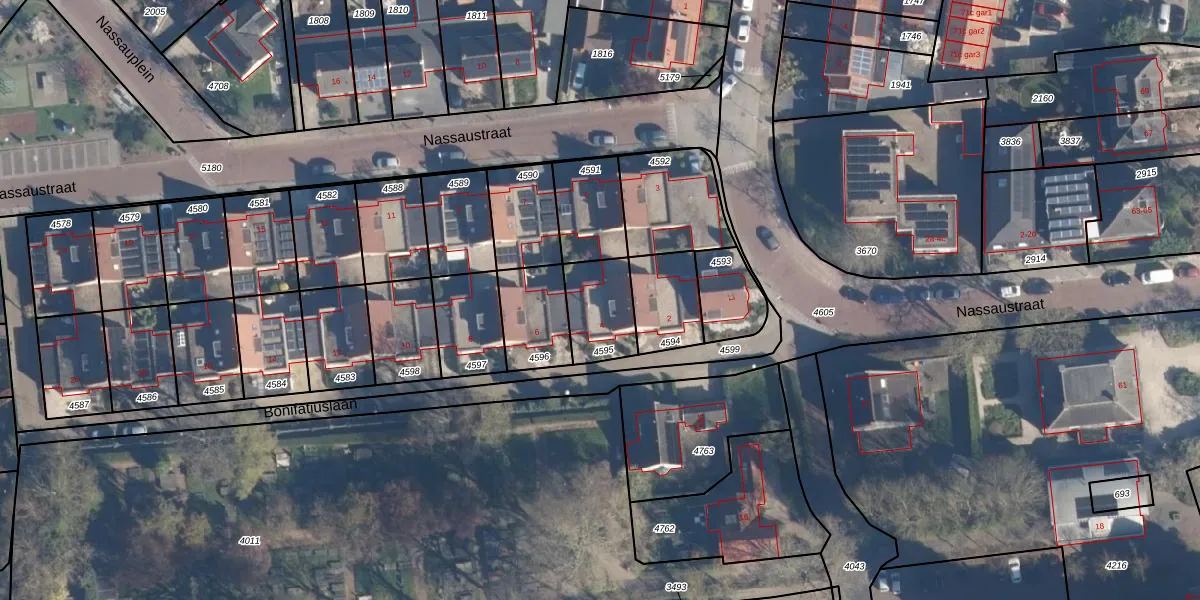 Bonifatiuslaan 4 is gelegen op kadastraal perceel BKL07B4595. Deze kadastrale aanduiding is uniek en wordt gebruikt door het Kadaster om eigendomsrechten en andere zakelijke rechten vast te leggen. Het perceel maakt onderdeel uit van de kadastrale gemeente Breukelen-Nijenrode.