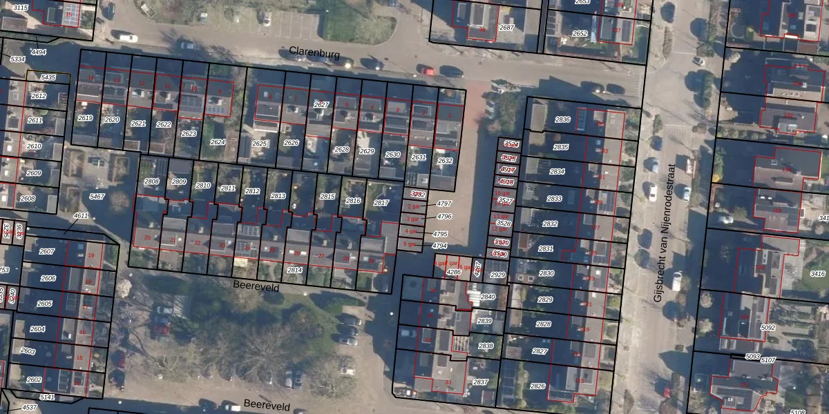 Gebruik de zoekbalk of klik op een perceel voor informatie over de adressen binnen dit perceel.