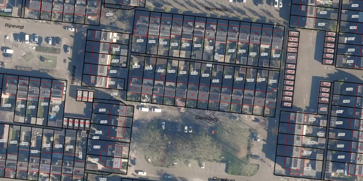 Het perceel waarop Clarenburg 25 staat heeft een oppervlakte van 159 m². Dit is een middelgroot perceel. De perceeloppervlakte wordt geregistreerd door het Kadaster. Gedetailleerde informatie over de maten van dit perceel kunt u vinden in het rapport Kadastrale kaart met maatvoering van Clarenburg 25.