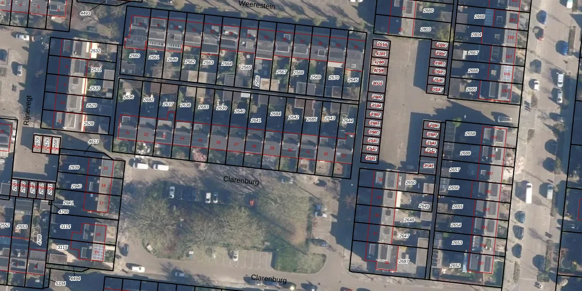 Het perceel waarop Clarenburg 30 staat heeft een oppervlakte van 159 m². Dit is een middelgroot perceel. De perceeloppervlakte wordt geregistreerd door het Kadaster. Gedetailleerde informatie over de maten van dit perceel kunt u vinden in het rapport Kadastrale kaart met maatvoering van Clarenburg 30.