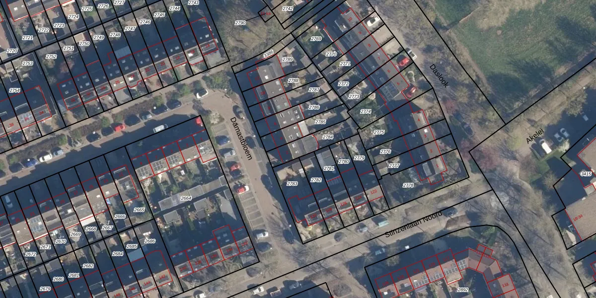 Gebruik de zoekbalk of klik op een perceel voor informatie over de adressen binnen dit perceel.