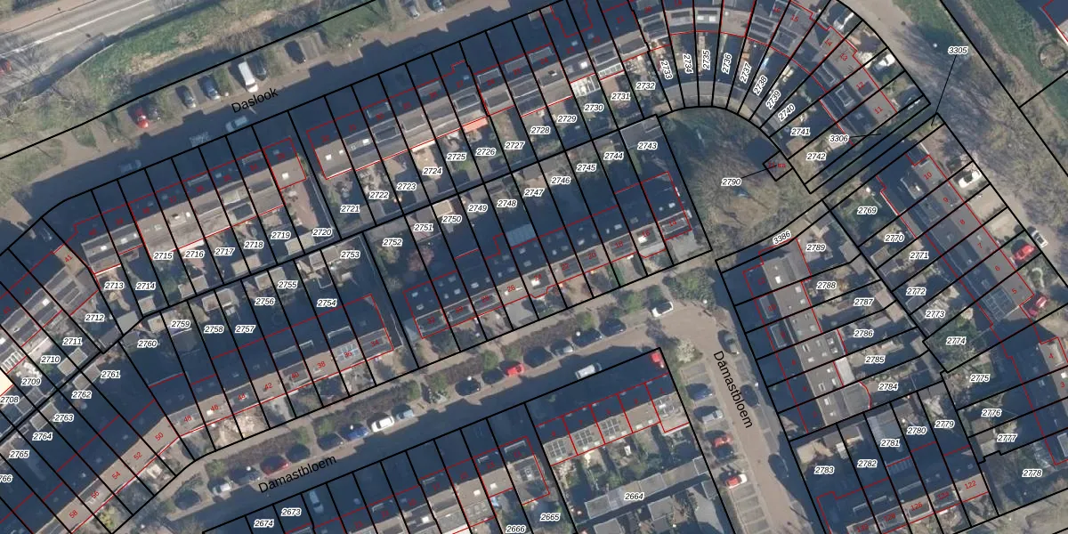 Gebruik de zoekbalk of klik op een perceel voor informatie over de adressen binnen dit perceel.