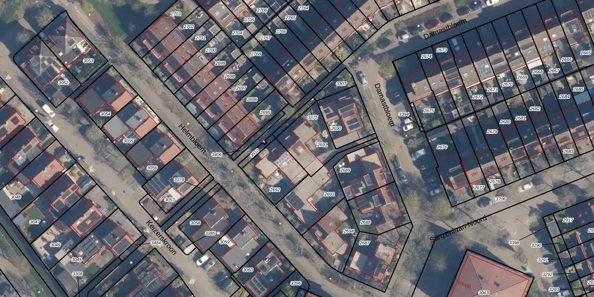 Gebruik de zoekbalk of klik op een perceel voor informatie over de adressen binnen dit perceel.