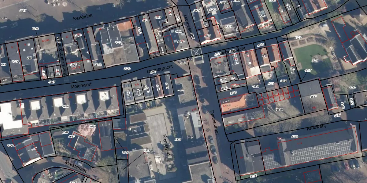 Het perceel waarop Dannestraat 1-e staat heeft een oppervlakte van 2820 m². Dit is een zeer groot perceel. De perceeloppervlakte wordt geregistreerd door het Kadaster. Gedetailleerde informatie over de maten van dit perceel kunt u vinden in het rapport Kadastrale kaart met maatvoering van Dannestraat 1-e.