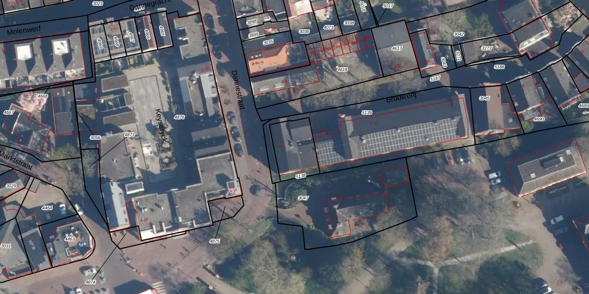Gebruik de zoekbalk of klik op een perceel voor informatie over de adressen binnen dit perceel.