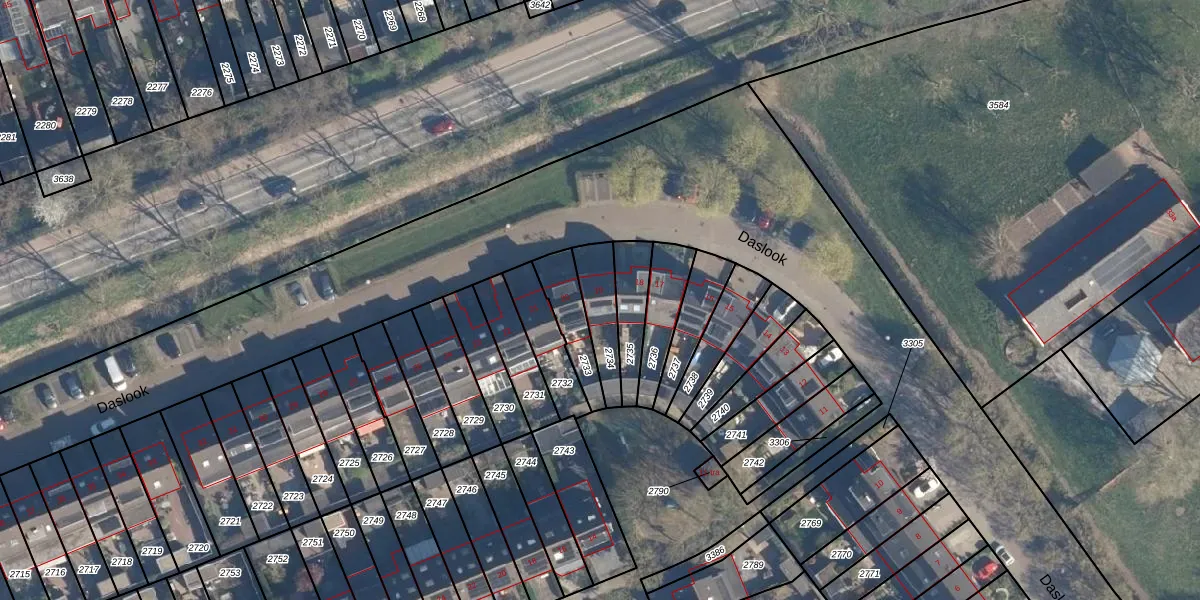 Het perceel waarop Daslook 19 staat heeft een oppervlakte van 127 m². Dit is een middelgroot perceel. De perceeloppervlakte wordt geregistreerd door het Kadaster. Gedetailleerde informatie over de maten van dit perceel kunt u vinden in het rapport Kadastrale kaart met maatvoering van Daslook 19.