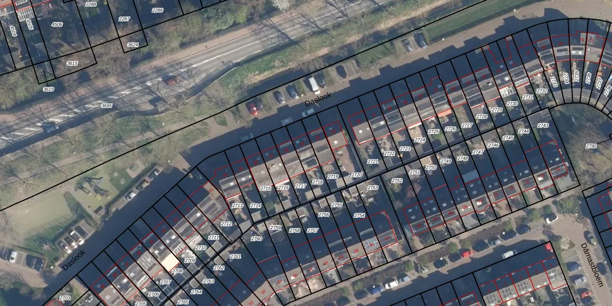 Gebruik de zoekbalk of klik op een perceel voor informatie over de adressen binnen dit perceel.
