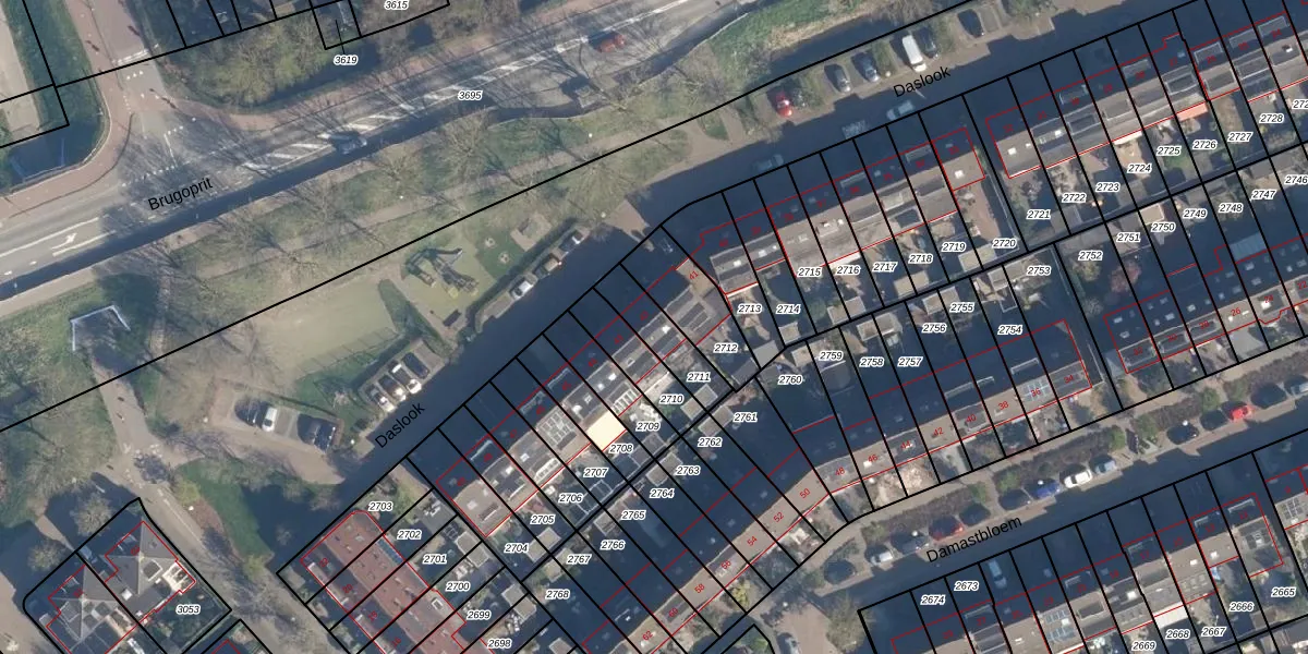 Het perceel waarop Daslook 42 staat heeft een oppervlakte van 140 m². Dit is een middelgroot perceel. De perceeloppervlakte wordt geregistreerd door het Kadaster. Gedetailleerde informatie over de maten van dit perceel kunt u vinden in het rapport Kadastrale kaart met maatvoering van Daslook 42.
