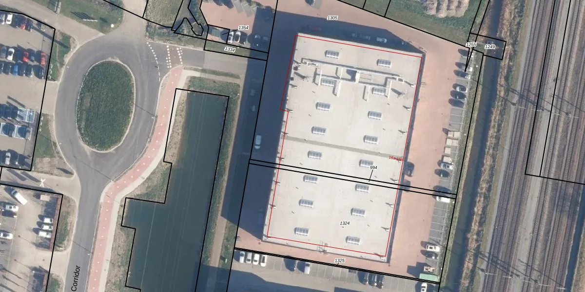 Het perceel waarop De Corridor 16-d staat heeft een oppervlakte van 3990 m². Dit is een zeer groot perceel. De perceeloppervlakte wordt geregistreerd door het Kadaster. Gedetailleerde informatie over de maten van dit perceel kunt u vinden in het rapport Kadastrale kaart met maatvoering van De Corridor 16-d.
