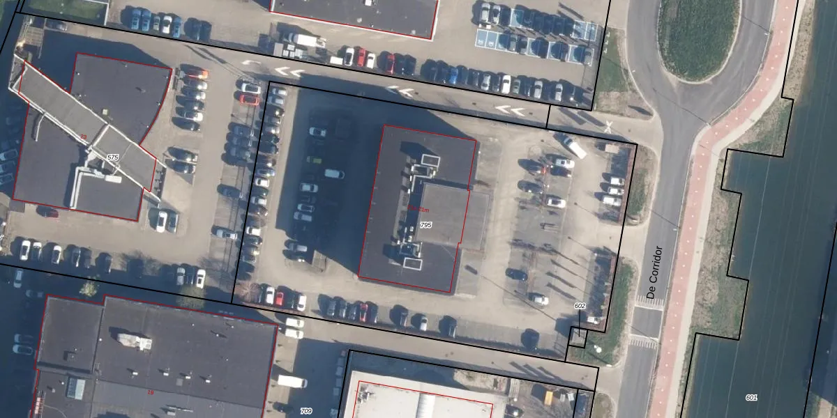 Het perceel waarop De Corridor 21-l staat heeft een oppervlakte van 4755 m². Dit is een zeer groot perceel. De perceeloppervlakte wordt geregistreerd door het Kadaster. Gedetailleerde informatie over de maten van dit perceel kunt u vinden in het rapport Kadastrale kaart met maatvoering van De Corridor 21-l.