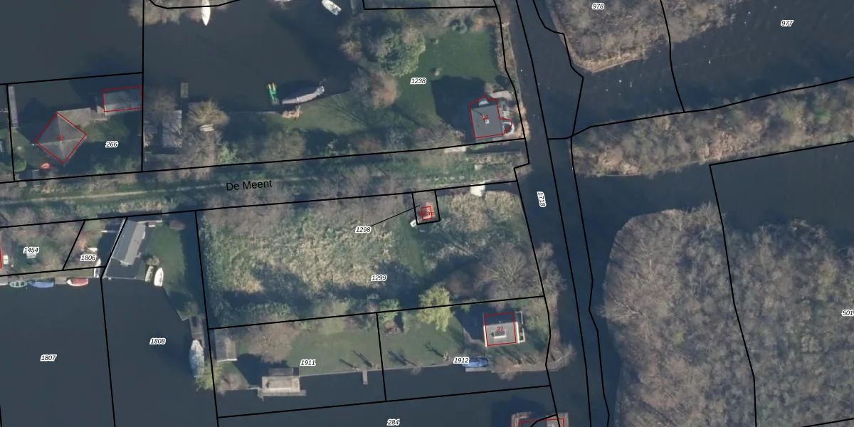 Het perceel waarop De Meent 22-tra staat heeft een oppervlakte van 25 m². Dit is een klein perceel. De perceeloppervlakte wordt geregistreerd door het Kadaster. Gedetailleerde informatie over de maten van dit perceel kunt u vinden in het rapport Kadastrale kaart met maatvoering van De Meent 22-tra.