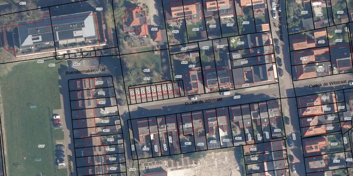 Het perceel waarop Dudok de Witstraat 1-A-gar staat heeft een oppervlakte van 558 m². Dit is een groot perceel. De perceeloppervlakte wordt geregistreerd door het Kadaster. Gedetailleerde informatie over de maten van dit perceel kunt u vinden in het rapport Kadastrale kaart met maatvoering van Dudok de Witstraat 1-A-gar.
