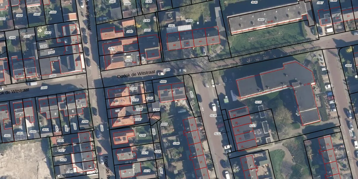 Het perceel waarop Dudok de Witstraat 11 staat heeft een oppervlakte van 1687 m². Dit is een zeer groot perceel. De perceeloppervlakte wordt geregistreerd door het Kadaster. Gedetailleerde informatie over de maten van dit perceel kunt u vinden in het rapport Kadastrale kaart met maatvoering van Dudok de Witstraat 11.