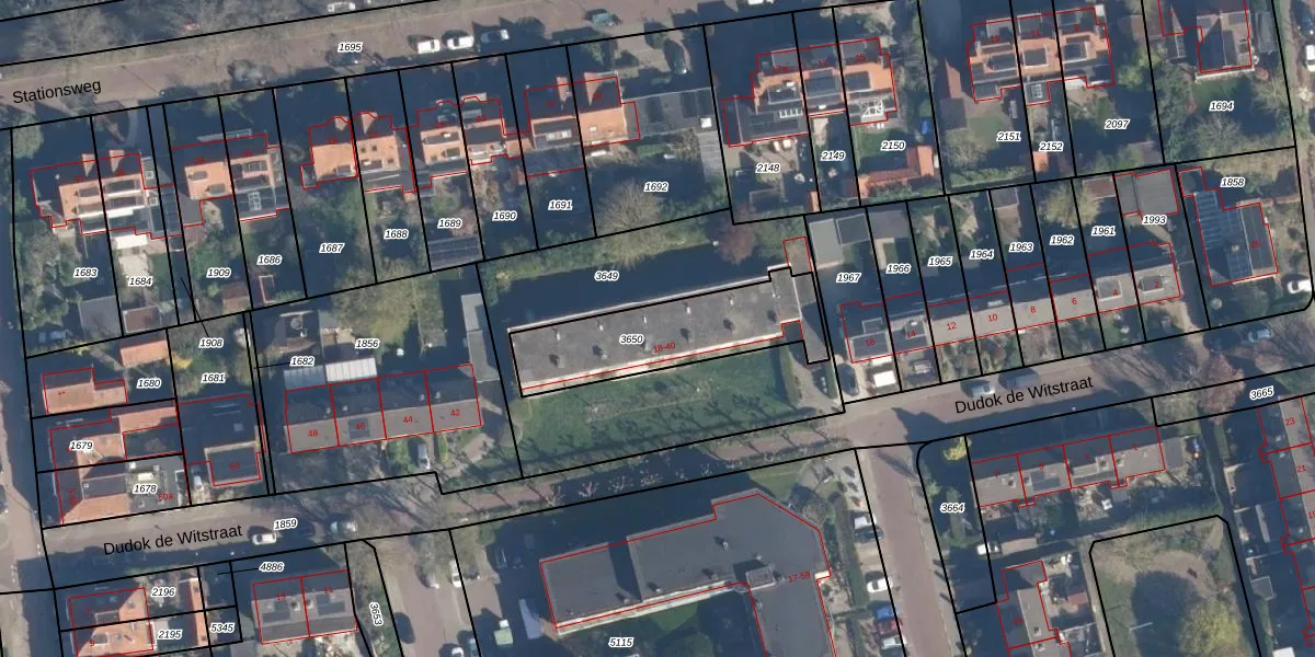 Het perceel waarop Dudok de Witstraat 26 staat heeft een oppervlakte van 473 m². Dit is een groot perceel. De perceeloppervlakte wordt geregistreerd door het Kadaster. Gedetailleerde informatie over de maten van dit perceel kunt u vinden in het rapport Kadastrale kaart met maatvoering van Dudok de Witstraat 26.