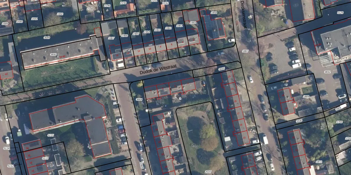 Het perceel waarop Dudok de Witstraat 3 staat heeft een oppervlakte van 5380 m². Dit is een zeer groot perceel. De perceeloppervlakte wordt geregistreerd door het Kadaster. Gedetailleerde informatie over de maten van dit perceel kunt u vinden in het rapport Kadastrale kaart met maatvoering van Dudok de Witstraat 3.