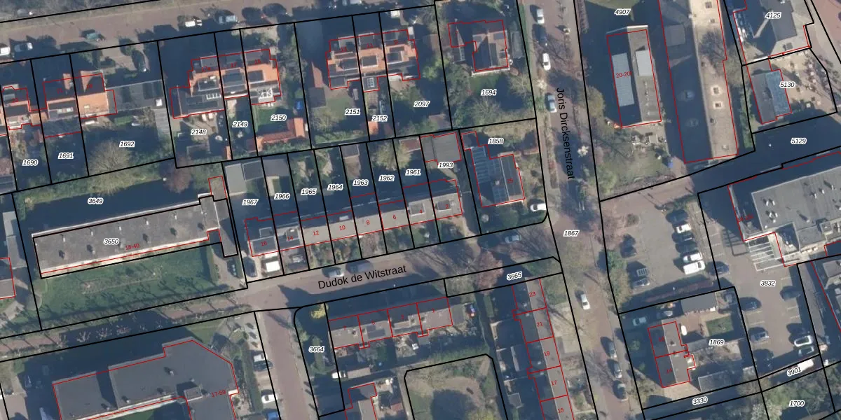 Gebruik de zoekbalk of klik op een perceel voor informatie over de adressen binnen dit perceel.