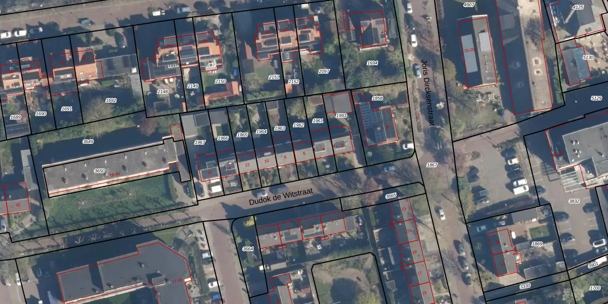 Het perceel waarop Dudok de Witstraat 6 staat heeft een oppervlakte van 172 m². Dit is een middelgroot perceel. De perceeloppervlakte wordt geregistreerd door het Kadaster. Gedetailleerde informatie over de maten van dit perceel kunt u vinden in het rapport Kadastrale kaart met maatvoering van Dudok de Witstraat 6.
