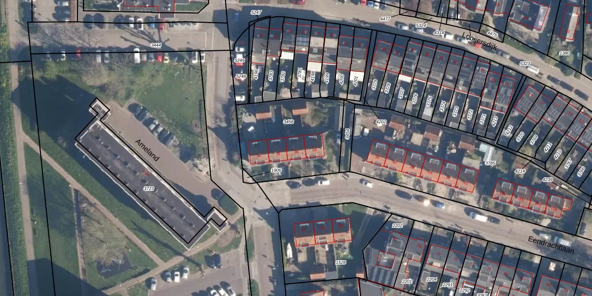Het perceel waarop Eendrachtlaan 36 staat heeft een oppervlakte van 907 m². Dit is een groot perceel. De perceeloppervlakte wordt geregistreerd door het Kadaster. Gedetailleerde informatie over de maten van dit perceel kunt u vinden in het rapport Kadastrale kaart met maatvoering van Eendrachtlaan 36.