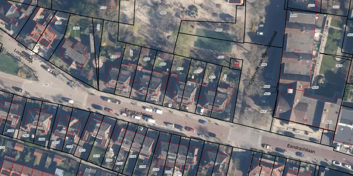 Gebruik de zoekbalk of klik op een perceel voor informatie over de adressen binnen dit perceel.