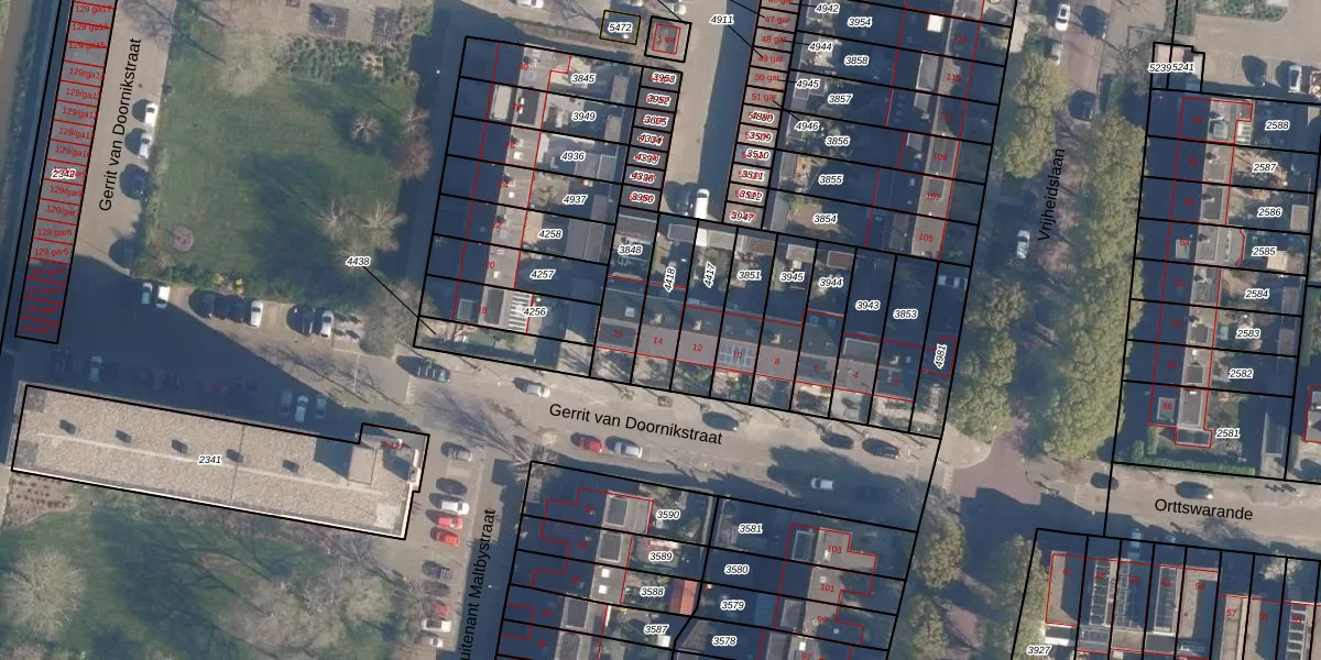 Gebruik de zoekbalk of klik op een perceel voor informatie over de adressen binnen dit perceel.