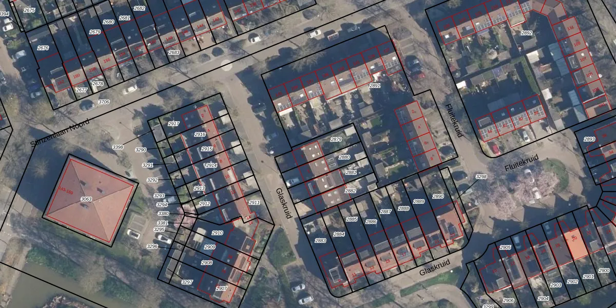 Gebruik de zoekbalk of klik op een perceel voor informatie over de adressen binnen dit perceel.