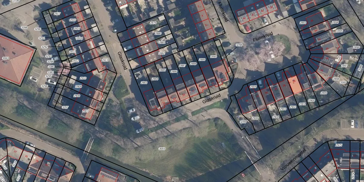 Gebruik de zoekbalk of klik op een perceel voor informatie over de adressen binnen dit perceel.