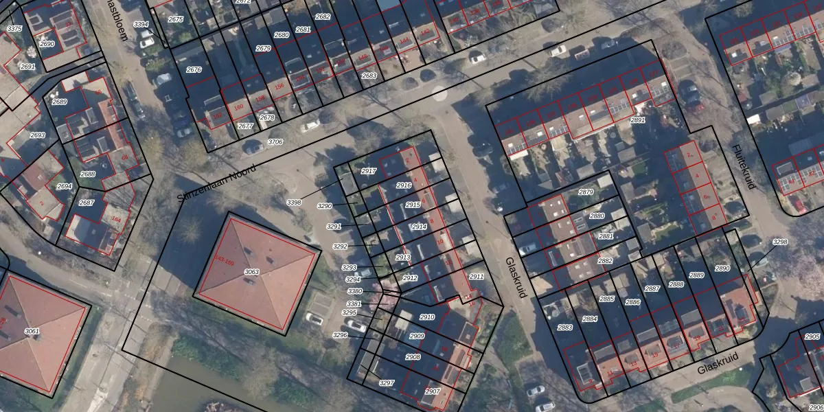 Gebruik de zoekbalk of klik op een perceel voor informatie over de adressen binnen dit perceel.