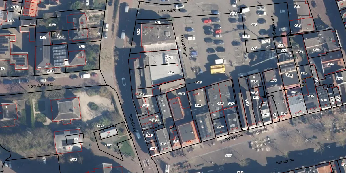 Gebruik de zoekbalk of klik op een perceel voor informatie over de adressen binnen dit perceel.