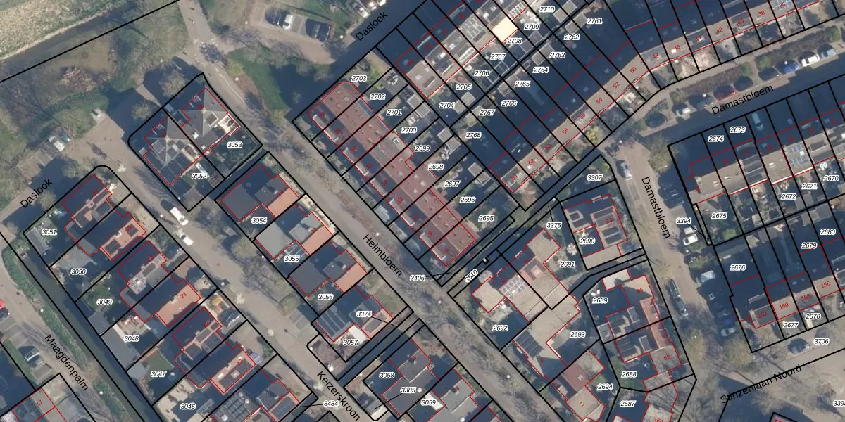 Gebruik de zoekbalk of klik op een perceel voor informatie over de adressen binnen dit perceel.