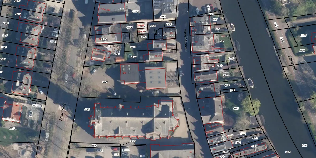 Het perceel waarop Herenstraat 19-a staat heeft een oppervlakte van 1365 m². Dit is een zeer groot perceel. De perceeloppervlakte wordt geregistreerd door het Kadaster. Gedetailleerde informatie over de maten van dit perceel kunt u vinden in het rapport Kadastrale kaart met maatvoering van Herenstraat 19-a.